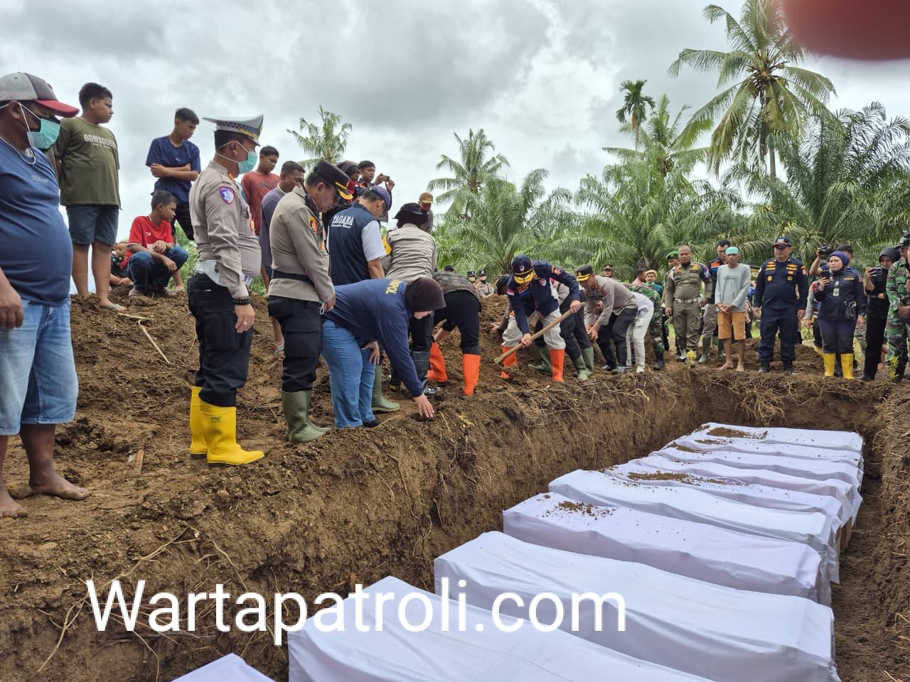 Agam, Wartapatroli com, – Dalam suasana duka yang menyayat dan penuh keheningan, ratusan pelayat memadati Masjid Agung Nurul Fallah, Padang Baru, Lubukbasung, Kamis (11/12). Di bawah atap masjid yang menjadi saksi banyak peristiwa umat, hari itu kepedulian dan kemanusiaan menyatu dalam satu prosesi sakral: menyalatkan sepuluh jenazah tanpa identitas, korban galodo dahsyat yang merenggut banyak nyawa di Palembayan.