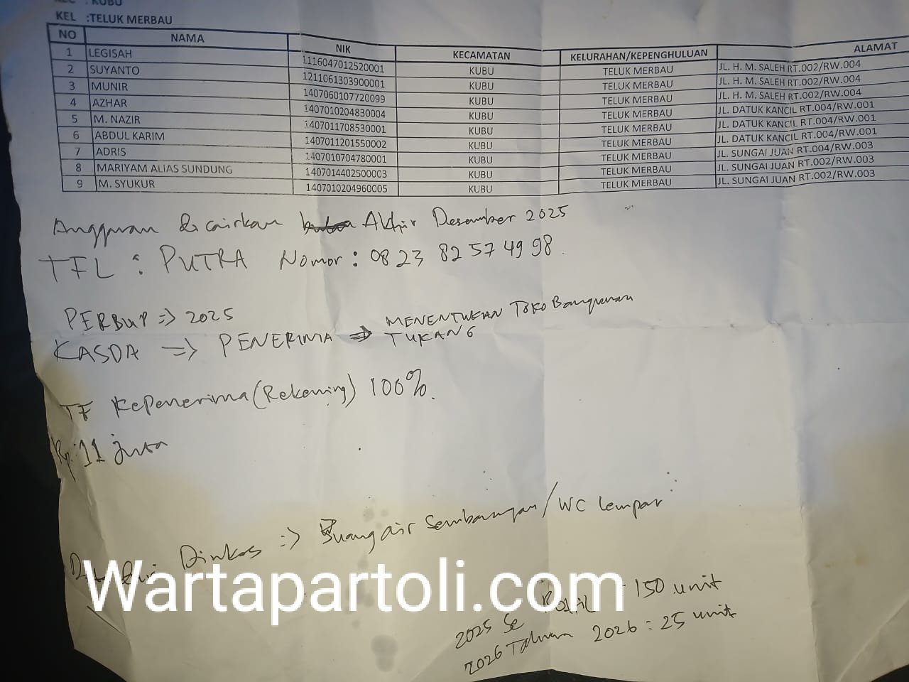 Berdasarkan penelusuran di lapangan dan keterangan sejumlah penerima manfaat, yang dihimpun Wartapatroli.com Rabu (11/3) sedikitnya terdapat 9 warga penerima bantuan MCK yang diminta membuka rekening bank serta menandatangani surat pengalihan dana kepada pihak supplier yang ditunjuk oleh tim fasilitator program.