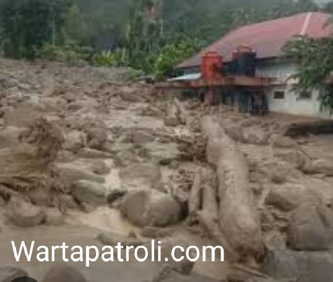 Agam, Wartapatroli.com – Banjir Bandang (Galodo-ref) kembali menerjang kawasan Maninjau, Kecamatan Tanjung Raya, Kabupaten Agam, tepat di malam pergantian Tahun Baru 2026, Rabu (31/12). Aliran Sungai Batang Muaro Pisang meluap secara tiba-tiba sekitar pukul 22.10 WIB, membawa material lumpur, batu, dan kayu dalam jumlah besar hingga menghantam permukiman warga serta menutup total akses jalan strategis Lubuk Basung–Bukittinggi.