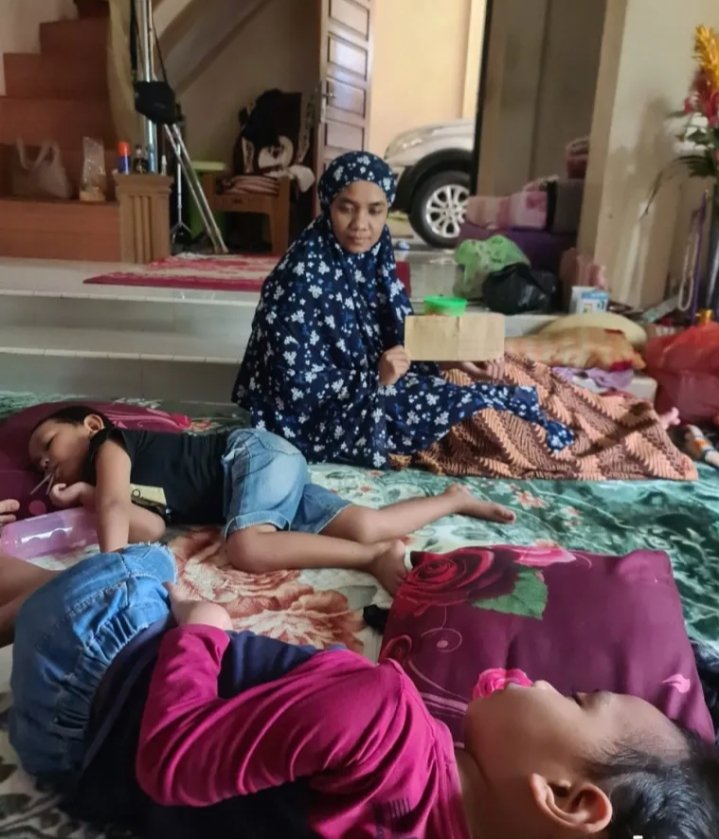“Airnya langsung setinggi dada. Saya cuma bisa tarik anak-anak, sambil bilang maafkan ibu kalau kita nggak selamat…” katanya, air mata jatuh perlahan, seperti sisa-sisa keberanian yang masih mengikatnya dengan kehidupan.