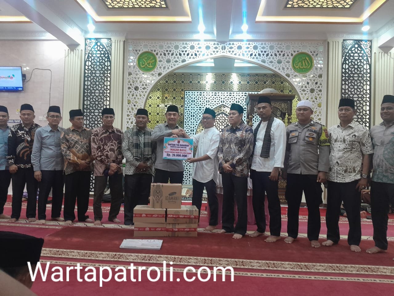 Pada kesempatan tersebut, Tim XIII Safari Ramadan menyerahkan bantuan untuk Masjid Raya Kampung Pinang berupa uang tunai sebesar Rp20 juta dan 50 lembar sarung guna mendukung operasional dan kegiatan keagamaan.